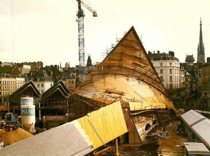 1979 - Réalisation de la charpente en lamellé de l’église de Rouen inaugurée par le Président de la République, Monsieur Valery Giscard d’Estaing. Celle-ci servira de source d’inspiration pour le logo de l’entreprise.